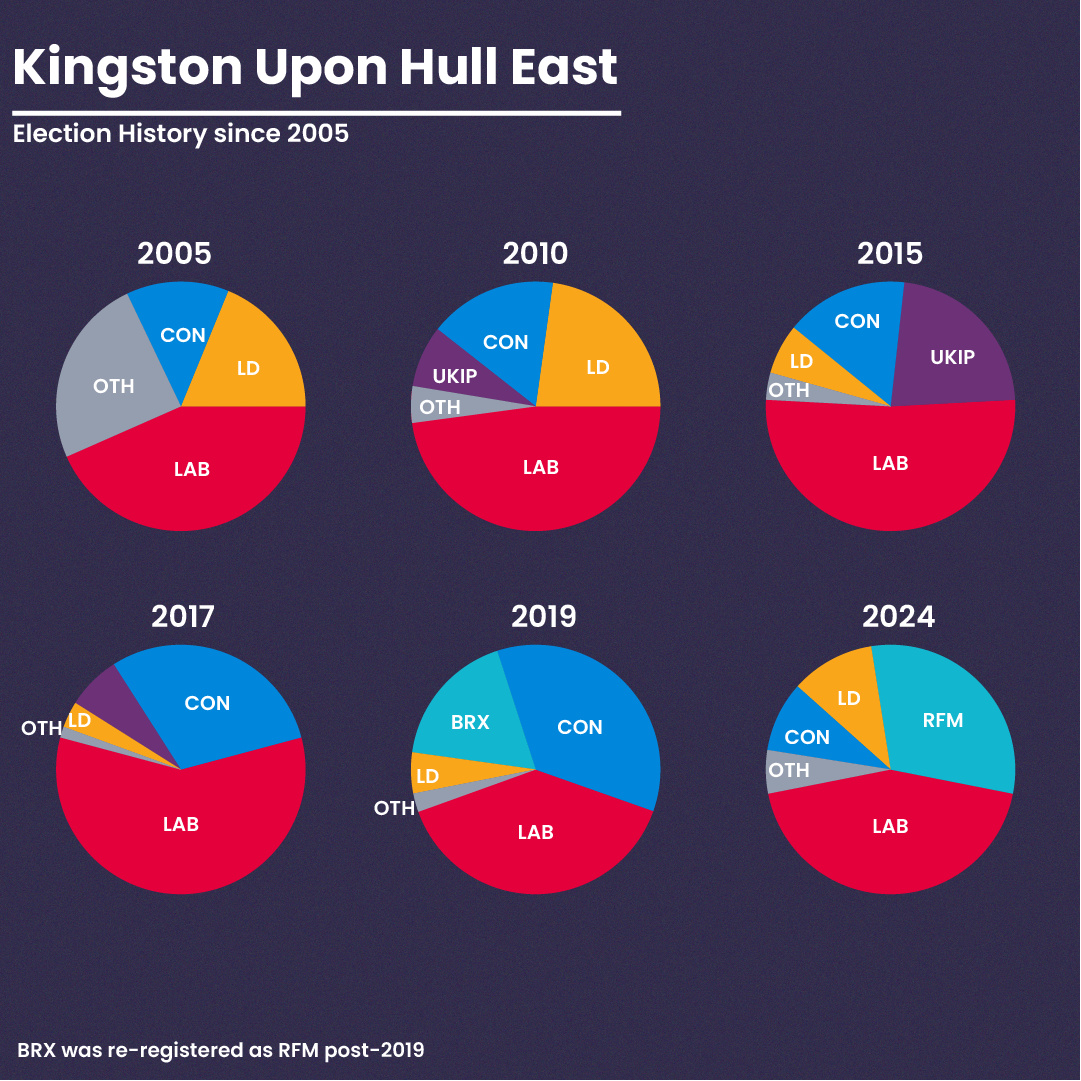 Kingston Upon Hull East has, for many years remained a key Labour stronghold; however, this has been on a decline since around 2015, when rising tensions over Brexit and the Leave campaign led to many long-term voters of the UK Labour Party switching to countries which would aim to cut ties with the European Union. Hull on a wider scale, such as the other constituencies such as Kingston Upon Hull North, and Kingston Upon Hull West & Haltemprice have seen a similar trajectory shifting towards the right wing vote, likely due to the tensions during the 1970s in relation to fishing rights which led to the downfall of the fishing economy.