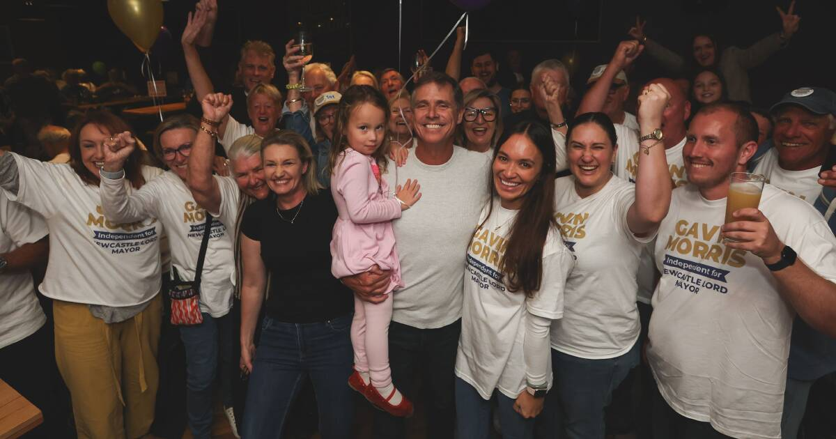 Gavin Morris with supporters on election night | Source: Newcastle Herald